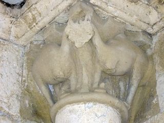 En levant les yeux, on ne cesse d’être étonnés par le bestiaire fantastique que forment les chapiteaux sculptés au XIIème siècle :