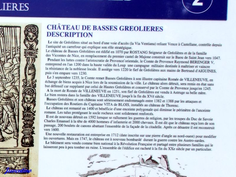 On distingue les Basses Gréolières (le village actuel) et les Hautes Gréolières
