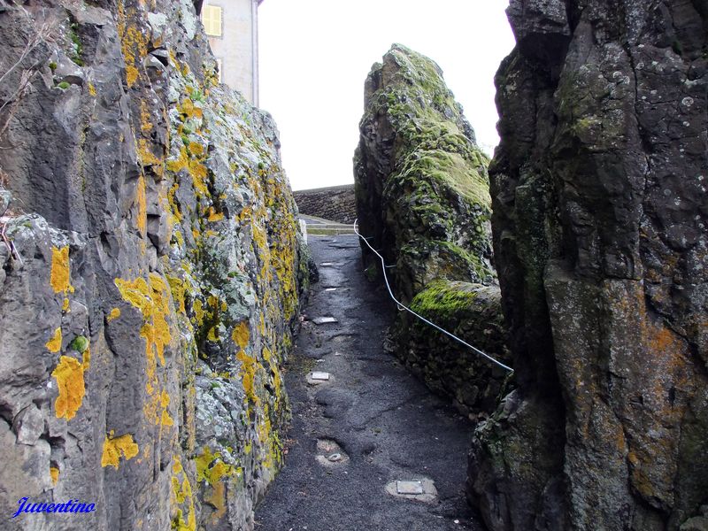 Plus loin, un chemin descend de la ville haute en franchissant le célèbre passage de « La Main de Saint Flour ». D’après la légende, Florus venu pour évangéliser la région aurait été arrêté dans son ascension à cet endroit par un gigantesque bloc de basalte. Il se serait alors agenouillé et aurait prié, la main sur le rocher. Et, miracle ! Le rocher se fend, une brèche s’ouvre et Florus atteint le sommet où il créera un lieu de prière.